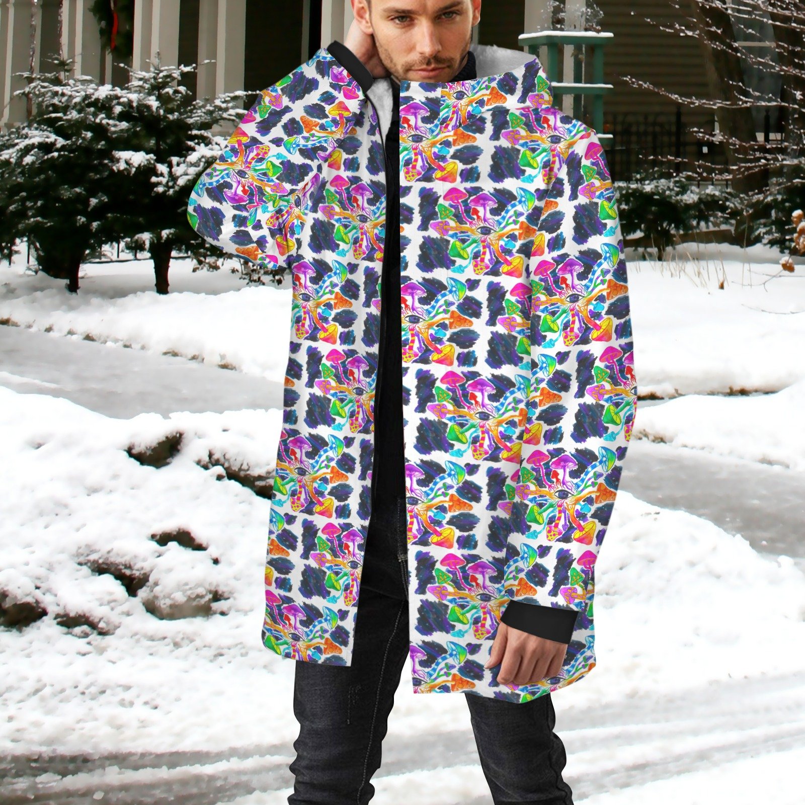 Psilocybin circle Men’s Mid-length Fleece-lined Jacket(Model H69)