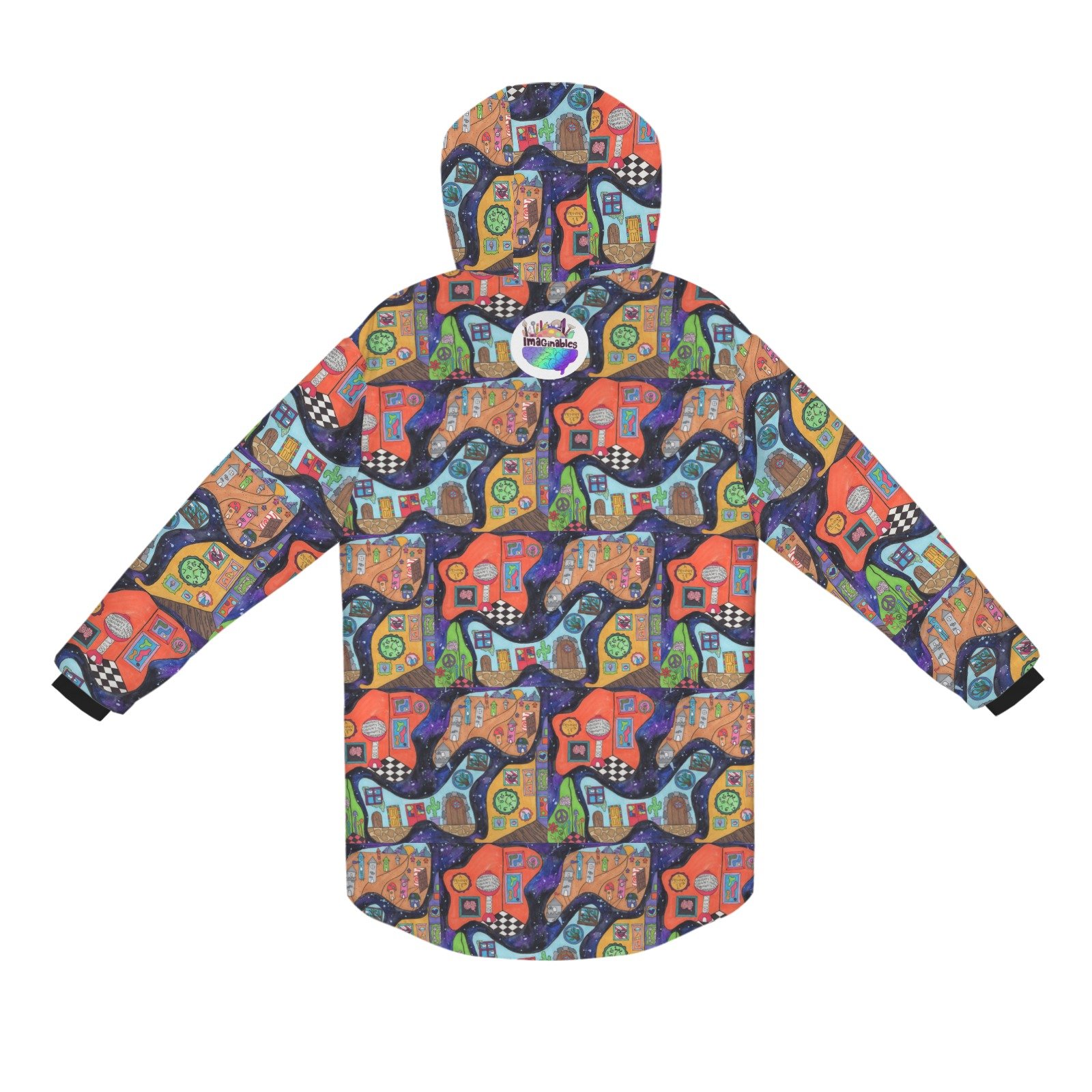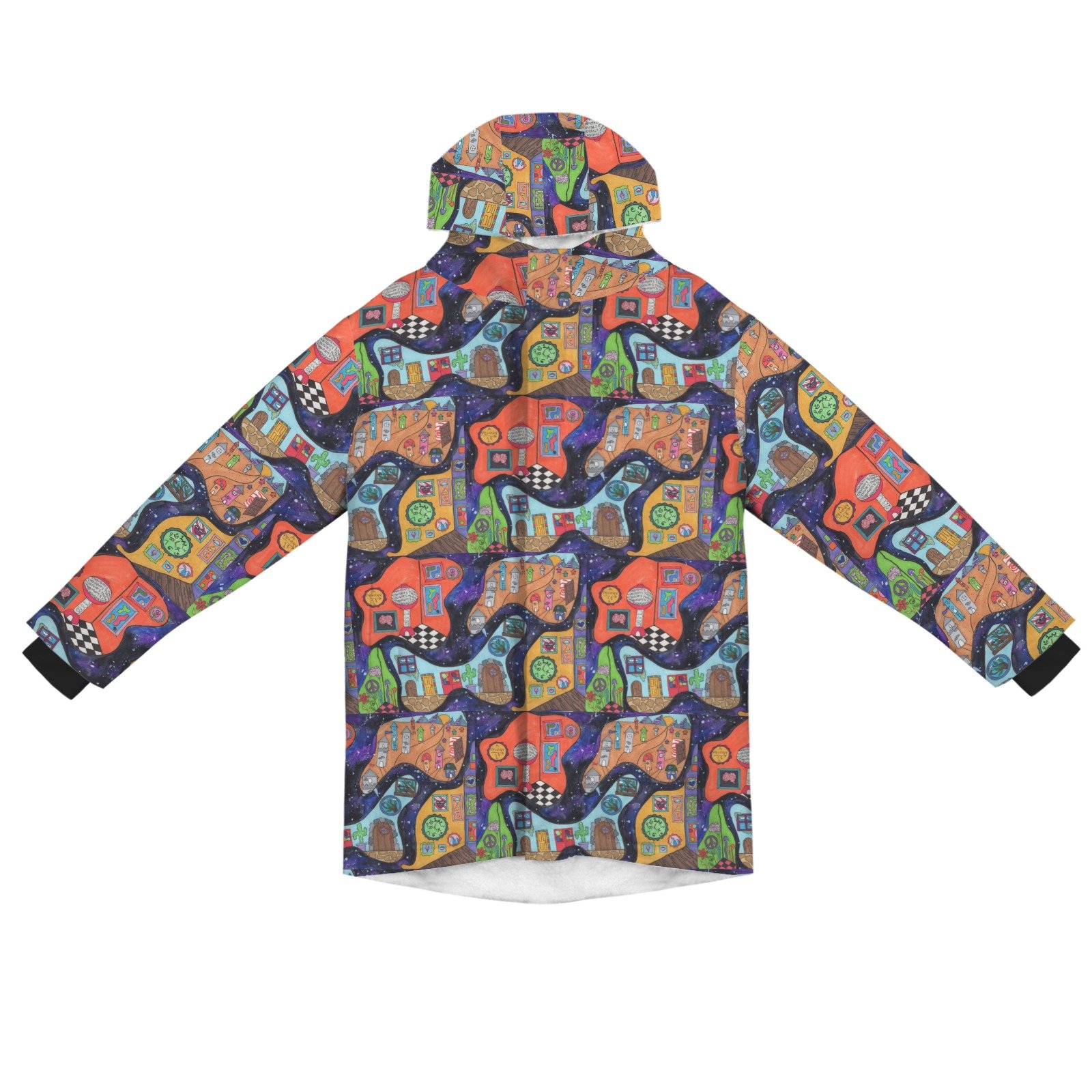 - The long sleeves and black zipper closure offer enhanced protection from the elements, while the spacious silhouette allows for effortless layering over casual or outdoor outfits, ensuring both comfort and versatility in cooler weather.