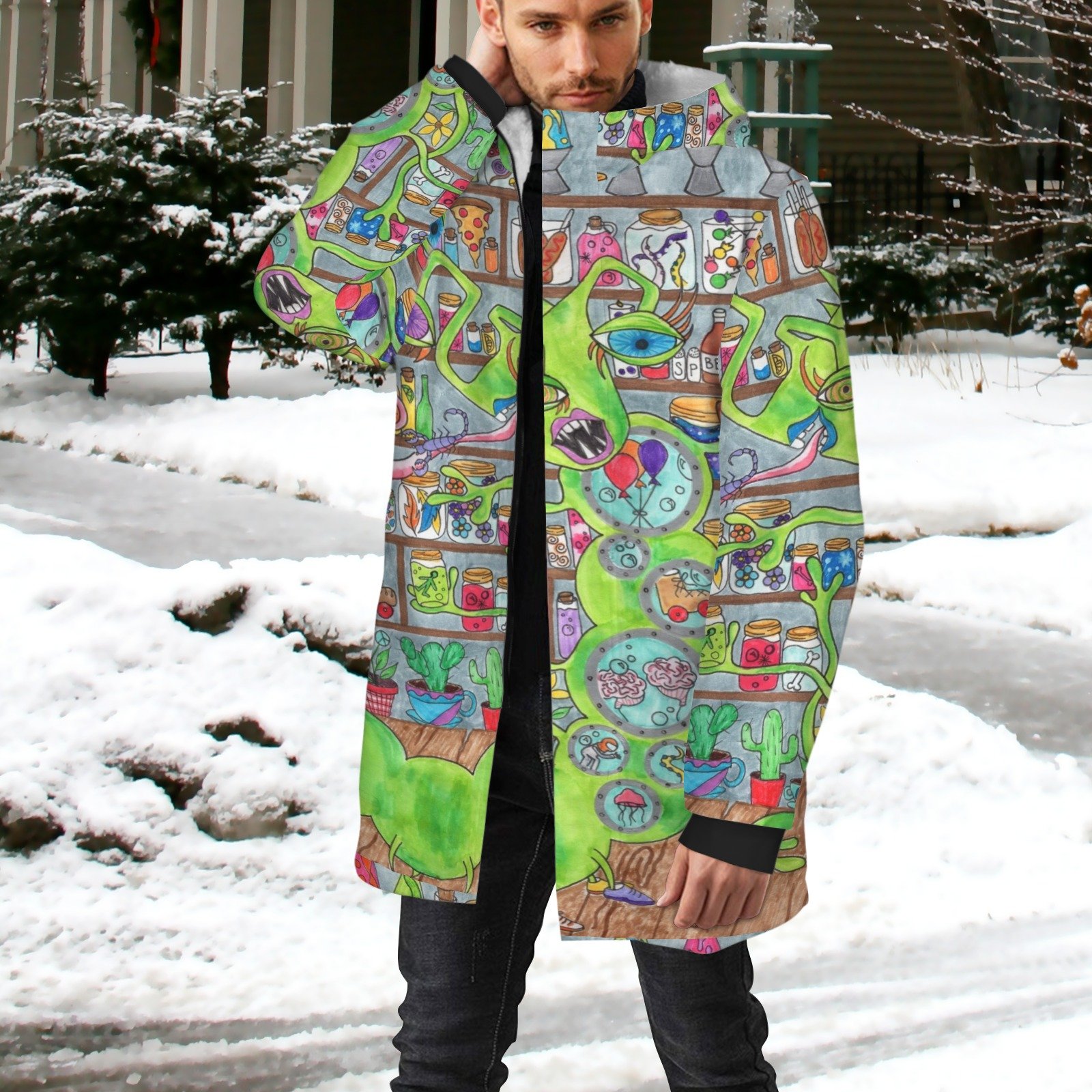 The Very Hungry Caterpillar vo. 2 Men’s Mid-length Fleece-lined Jacket(Model H69)